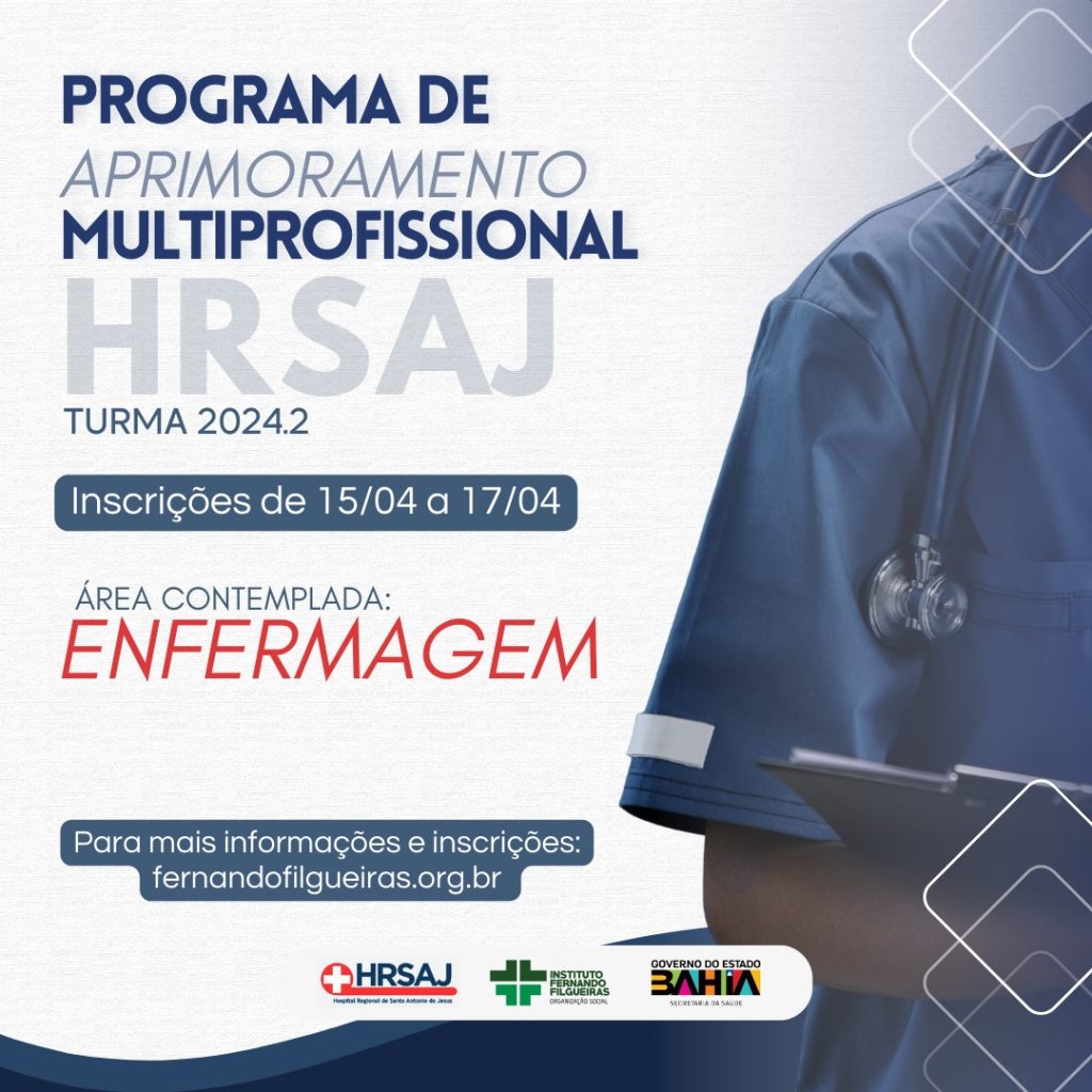 O Hospital Regional de Santo Antônio de Jesus (HRSAJ) torna público, nesta segunda-feira (08), o edital para preenchimento de vagas do Programa de Aprimoramento Multiprofissional 2024.2. O Programa é voltado a graduados em Enfermagem, com até três anos completos de formação (36 meses), e que não possuam experiência comprovada em carteira de trabalho na área de formação.